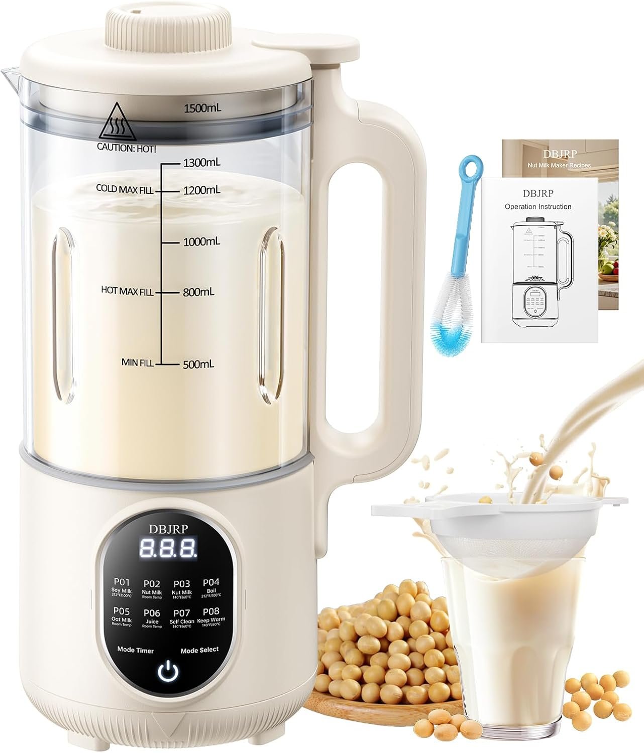 44oz Nut Milk Maker Machine, 8 in 1 Automatic Soy Milk Maker, Homemade Soy, Almond, Oat, Coconut, Plant Based and Non Dairy Beverages, Delay Start/Self-Cleaning with Electronic Cookbook
