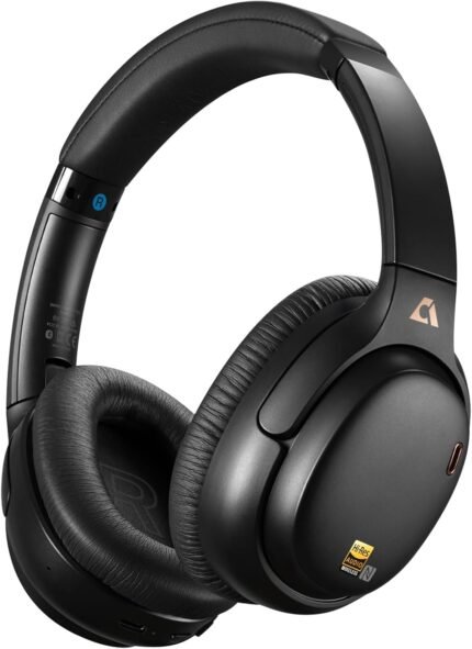 1Mii AI E700 Wireless Bluetooth Over Ear Headphones with Active Noise Cancelling, Hi-Res Audio LDAC/aptX Low Latency for Airplane Travel, AI Translation Voice Chat Custom EQ via App – Black
