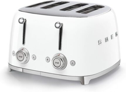 Smeg 50’s Style Retro Aesthetic 4 Slice Toaster 6 Presets Extra Wide Slots White TSF03WHUS