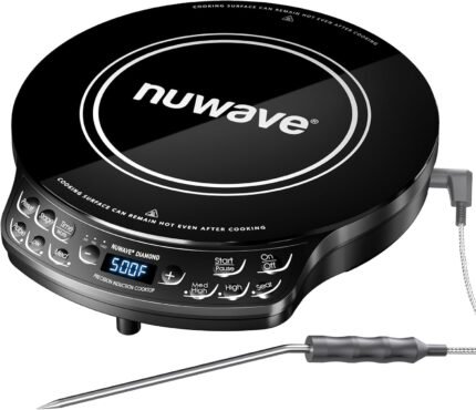 Nuwave Portable Induction Cooktop Diamond with Probe, Advanced Countertop Burner, 91 Temps from 100°F to 500°F, 12”Shatter-Proof Ceramic Glass & 6.5”Heating Coil, Ideal for RV Camp,Small Apt,Travel