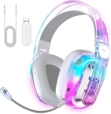 BENGOO Wireless Gaming Headset for PS5, PS4, PC, Switch, Mac, 2.4GHz USB Over Ear Gaming Headphones with Crystal RGB Lights