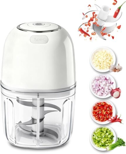 Electric Garlic Chopper, 350ML USB Garlic Mincer Masher Portable Veggie Chopper Blender to Vegetable Grinder Mini Food Processor 6 Stainless Steel Blade for Nuts Chili Onion Ginger Spices