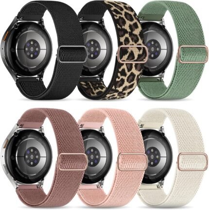 Stretchy Bands Compatible with Samsung Galaxy Watch 7 6 4 5 Band 40mm 44mm/Watch 6 4 Classic 47mm 43mm 42mm 46mm/5 Pro/FE/Active 2, 6 Pack 20mm Nylon Sport Strap for Galaxy Watch 7 Band Women Men