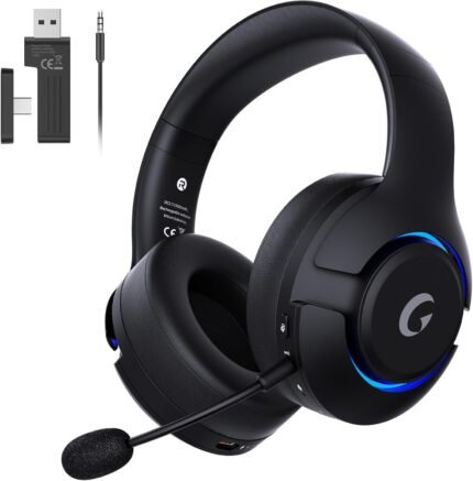 2.4GHz Wireless Gaming Headset for PC, PS5, PS4, Switch & Mac, Dual-Mode Gaming Headphones with Bluetooth 5.4, Ultra-Low Latency, ENC Noise-Reducing Mic, 3D Stereo Sound, Up to 45H Battery