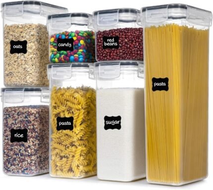 PANTRYSTAR Airtight Food Storage Containers with Lids, 7 PCS BPA Free Kitchen Canisters for Spaghetti, Pasta, Dry Food, Flour and Sugar, Plastic Canisters for Pantry Organization and Storage