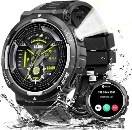 Military Smart Watches for Men, 1.7″ Smart Watch with 1000 mAh Battery, Led Flashlight, Answer/Make Calls, IP68 Waterproof, Heart Rate/Sleep Monitor 100+ Sport Modes Fitness Watch for Android/iPhone
