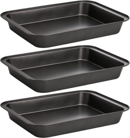 Lyellfe 3 Pack Rectangle Baking Pan, Non-Stick Cake Pans for Oven, 13 x 9 Inch Deep Cookie Sheet Tray for Brownie Lasagna Casserole Bread, BPA Free