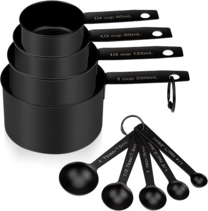 Measuring Cups and Spoons Set of 9, Stainless Steel Measuring cup for Cooking and Baking, Measuring spoons for Dry and Liquid Ingredients (Black)