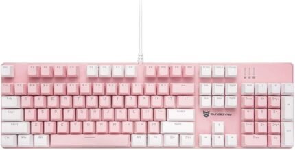 Mechanical Keyboard Gaming Keyboard | Blue Switch, Pink & White Color, White Backlit Keyboard | 104 Keys US Layout | Wired Gaming Keyboard | Hot Swappable Mechanical Keyboard | PC Keyboard