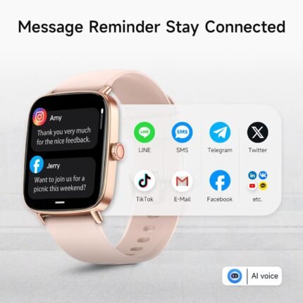 Smart Watch for Women, 1.85″HD Fitness Tracker (Answer/Make Call/Messages), 130+ Sport Modes with 24/7 Heart Rate/Sleep Monitor/Pedometer, IP68 Waterproof, Smartwatche for Android&iOS (Rose Gold)