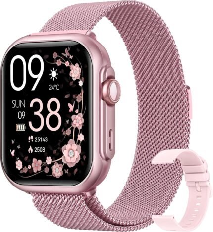 RUIMEN Smart Watches for Men Women (Answer/Make Calls, 2 Bands Included), 1.8″ Smartwatch for iOS/Android Phones, Fitness Tracker Heart Rate/Sleep Monitor Digital Watch Waterproof Pink