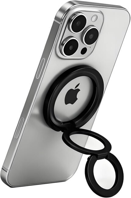 Magnetic Phone Ring MagSafe Phone Grip, Magnetic Cell Phone Stand Holder Finger Ring [Super Magnet] [360° Rotation] [Double Bracket] – Black 2025 New