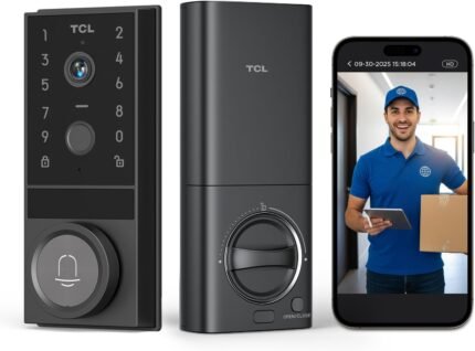 TCL Video Smart Door Lock D1 Max, 3-in-1 2K Camera+Doorbell+Fingerprint Door Lock, Built-in Wi-Fi Deadbolt for Front Door, Keyless Entry, Auto Lock, App Remote Control, Easy Installation (Black)
