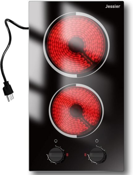 2 Burner Electric Cooktop – 12 Inch Plug in Portable 110V Electric Cook Top Two Burner, Built-in & Countertop Ceramic Stove Top with Knob Control, 9 Power Levels and Overheat Protection