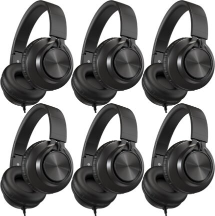 AILIHEN Kids Headphones Wired for School Bulk, 6 Pack Headsets with Microphone for K-12th Grade Classroom, Students, Teens, 3.5mm Jack for Chromebook, Computer, Laptop (Black)