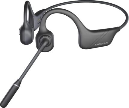 MONODEAL Bone Conduction Headphones with Mic, Bluetooth 5.3 Open Ear Headphones with Noise-Canceling Boom Microphone, Wireless Headset Earphones for Work, Driving, Home Office Commercial