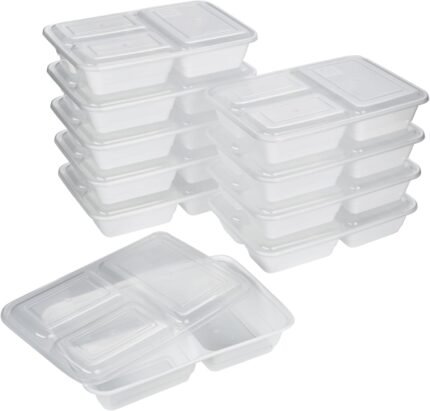 GoodCook Meal Prep Rectangle Three Compartment 20-Piece, White, Made without BPA