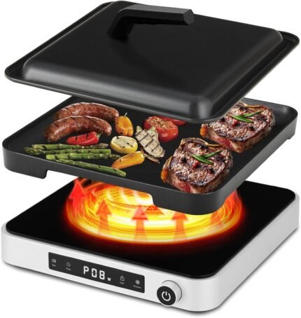 Price: (as of – Details) Product description 【2-in-1 Induction Cooktop & Grill Pan】Experience both induction cooking and grilling in one