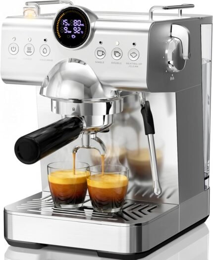 COWSAR Espresso Machine, 20 Bar Espresso Maker with Milk Frother Steam Wand, LED Display, Stainless Steel, Home Barista Machine for Latte & Cappuccino