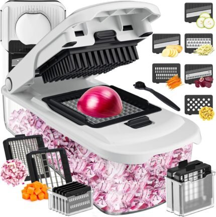 14-in-1 Vegetable Chopper with Container & Interchangeable Blades – Veggie & Onion Chopper, Food Dicer, Mandoline Slicer for Kitchen, Vegetable Slicer for Fast Meal Prep