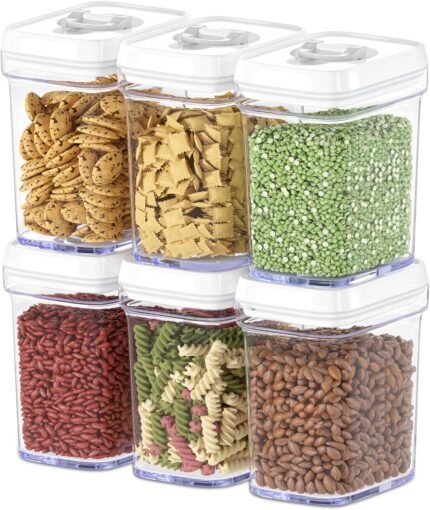 DWËLLZA KITCHEN Airtight Food Storage Containers with Lids – 6 Piece Set Air Tight Kitchen Storage Containers for Pantry Organization and Storage – Clear Plastic BPA-Free – Keeps Food Fresh & Dry