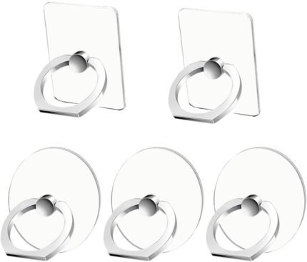 Cell Phone Ring Holder Stand 5 Pack, Transparent Phone Ring Holder Finger Kickstand 360° Degree Rotation Clear Phone Ring Grip Compatible iPhone Cellphone Phone Case (Round)