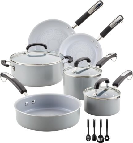 Farberware EcoAdvantage Ceramic Nonstick Cookware/Pots and Pans Set, 13 Piece – Gray