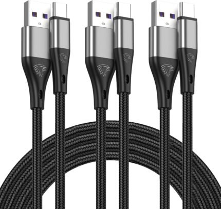 USB-C Cable 3-Pack (3ft/6ft/6ft), USB A to USB-C Fast Charging Cord, Nylon Braided, Compatible with 17/16/15 Pro Max ,Galaxy and Other Type-C Devices – Black