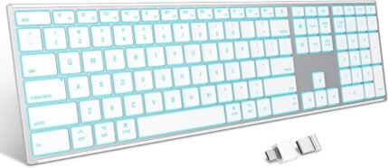 OMOTON Wireless Keyboard for Mac with Forged Metal Frame – 2.4G & Dual Bluetooth (BT1/BT2), Type-C/USB A Receiver, Ultra-Thin, Backlit, Full Size Keyboard for Mac/MacBook/iMac, White