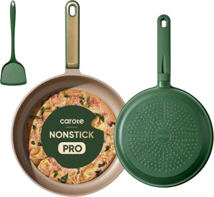 CAROTE 9.5” and 11” Nonstick Frying Pans Skillet, NonStick Fry Pan Egg Pan Omelet Pans,Healthy & PFOA Free, Induction-Compatible, Dishwasher Safe & Includes Silicone Spatula,Green