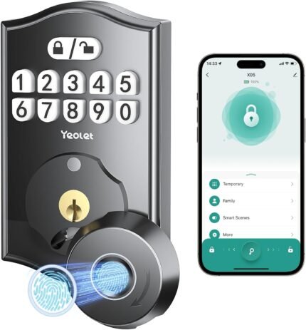 Yeolet Fingerprint Keyless Entry Door Lock App Control Smart Locks for Front Door, Keypad Deadbolt, Auto Lock One Time Password Easy Installation, Black