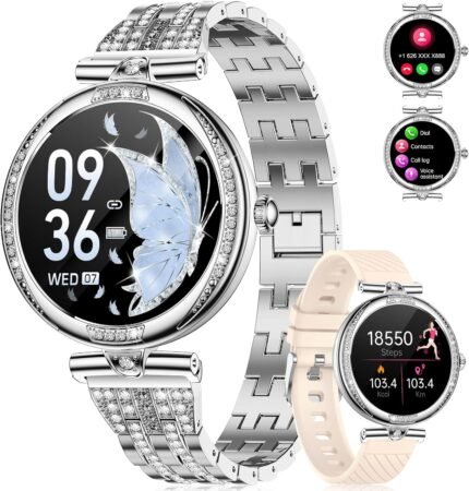 LIGE Smart Watches for Women (Answer/Make Call) with Diamonds,1.19” AMOLED Smartwatch with Heart Rate/Sleep Monitor,IP68 Waterproof Fitness Tracker 120 Sport Modes Pedometer for Android iOS,Sliver