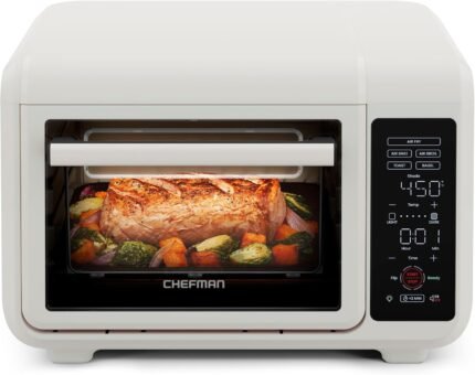 Chefman Air Fryer Toaster Oven Combo, Countertop Oven for Quick & Healthy Meals, Bake, Broil, Air Fry, Toast, and Bagel Functions, 450°F Max Temp, 4 Slice Toaster Oven Air Fryer Combo – Ivory