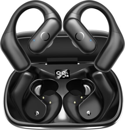 kurdene Active Noise Cancelling Wireless Earbuds Bluetooth Headphones for Sport, Digital Display, 66H Playtime, Deep Bass Sound Ear Buds, Open-Ear Secure Fit for Running, Workout-Black