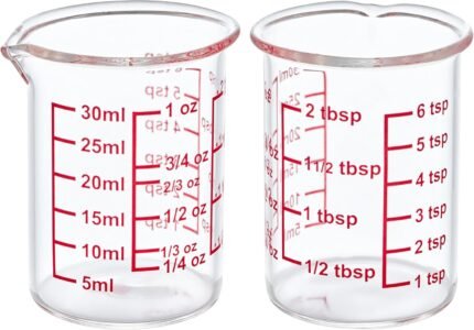 High Borosilicate Glass Measuring Cup with V-Shaped Spout, 30ml (1oz) | Pack of 2 – Precision Glass Measuring Cup for Kitchen & Bar