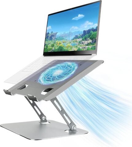 Laptop Cooling Stand with Fan and One Key Switch – Ergonomic Adjustable Height Desk Stand for All 10-16” Laptops & Tablets