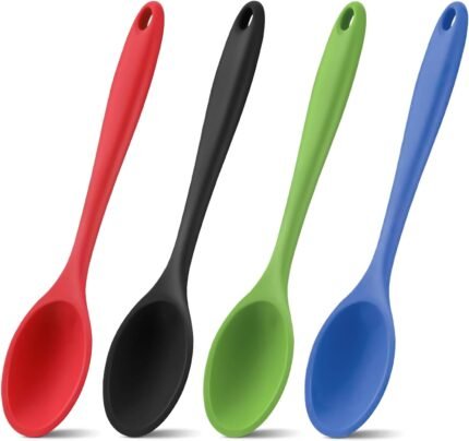 Price: (as of – Details) 4 pack silicone spoons set, multicolored silicone spoons nonstick kitchen spoons cooking baking spoons for