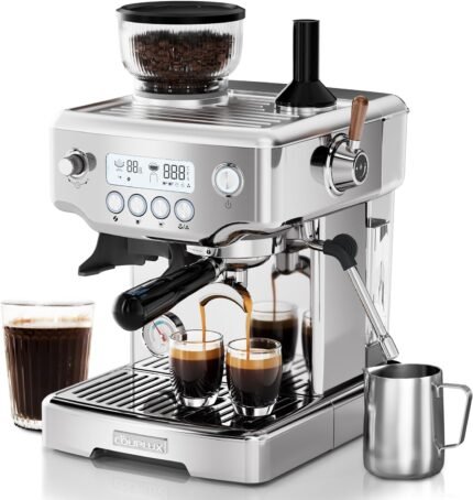 Espresso Machine, 20 Bar Semi-Automatic Espresso Machine with Grinder & Milk Frother Steam Wand, 1450W Home Cappuccino Latte Machine with Removable 95 Oz Water Tank, Stainless Steel