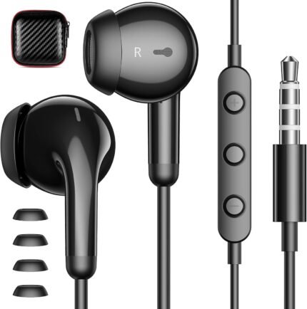 Wired Earbuds Light in-Ear Headphones for MacBook/Laptop/Kindle Fire, Corded Earphones with 3.5mm Jack Microphone Volume Control Plug-in Ear Buds for iPhone/Samsung/Android/Switch/PC/Kid/School, Black