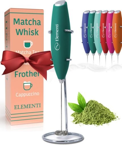 Elementi Matcha Whisk & Frother Set – Powerful Electric Matcha Mixer for Powder, Easy to Use Electric Whisk Kit – Craft Effortless Lattes with the Elementi Milk Frother Wand & Wisk (Emerald Green)