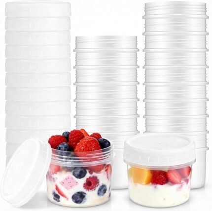 Afcabakila Food Storage Containers with Lids, 50 Pack 5 oz Bpa-Free Plastic Containers, Reusable Small Refrigerated Jars for Meal Prep, Leakproof, Stackable, Microwave/Dishwasher/Freezer Safe