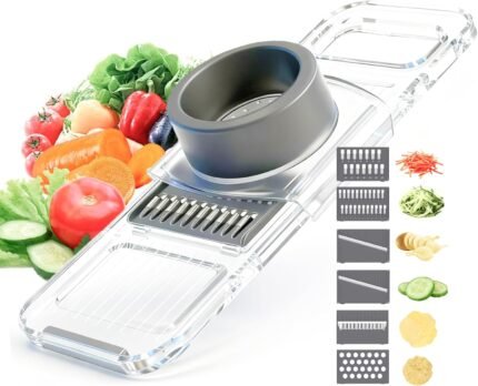 Mandoline Slicer for Kitchen – 6-in-1 Vegetable Chopper with Safe Hand Guard & Transparent Body – Dishwasher Safe Food Slicer Cutter for Potato, Tomato, Onion & Salad – Stainless Steel Blades