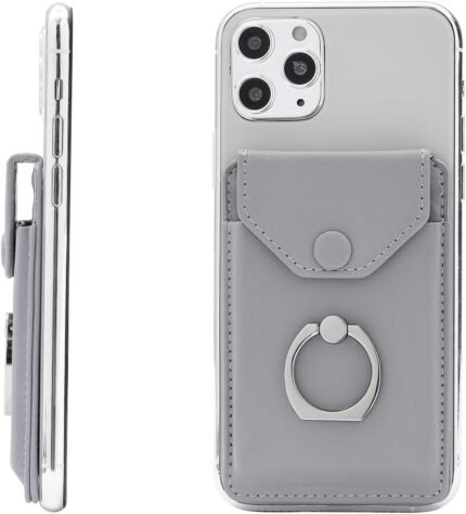 RFID Card Holder & Ring Stand for iPhone, Android, All Smartphones – Light Grey