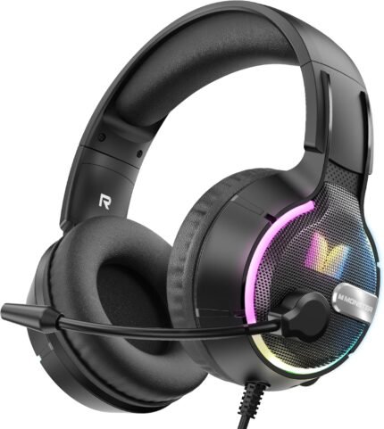 Monster Mission 320 Gaming Headset for PS5, PS4PC,Switch,Noise Cancelling Over Ear Headphones with Mic, LED Light, 7.1 Surround Sound,Gifts