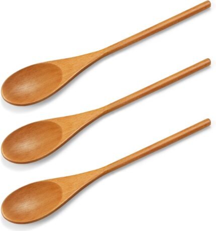 MORGLES 3Pcs Wooden Spoons for Cooking, 12 Inches Long Handle Mixing Spoons, Natural Wood Kitchen Utensils for Stirring, Serving & Eating