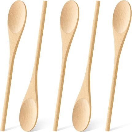 MORGLES 5 Pcs Wooden Spoons for Cooking, 12 Inches Long Handle Spoons for Mixing, Tasting Stirring Food, Large Wooden Cooking Utensils for Kitchen and Crafts