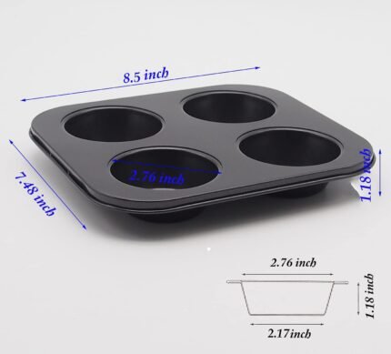 4 Cup Muffin Pan 2 Pcs (8.5 X 7.48 Inch) Air Fryer Small Oven Cupcake Baking Pan Non Stick No Toxic Bakeware