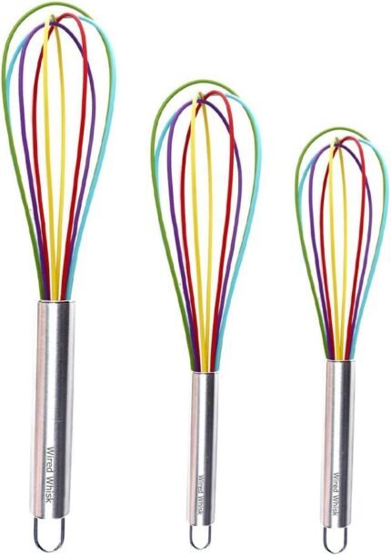 Silicone Whisk Set – Non-Scratch Set of 3 – Mini & Small Sizes – Stainless Steel Whisk – Cookware Wisking Tool