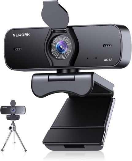 4K Webcam for PC with Stable Auto Focus, Smooth Video, 2 Noise-Cancelling Microphones, USB Plug & Play, with Adjustable Stand, Ideal for Online Teaching, Meetings, and Remote Communication