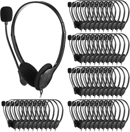 Kathfly Headset with Microphone Black Stereo Headphones Adjustable Office Conference Headphones with 3.5mm Plug for Adult Mobile Phone Tablet Business Call Center(20 Pcs)